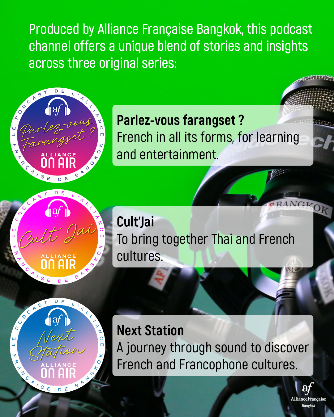 Alliance On Air, the new podcast channel from the Alliance Française Bangkok, invites you to explore French language and culture differently, with curiosity, smiles, and authenticity.